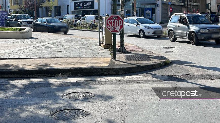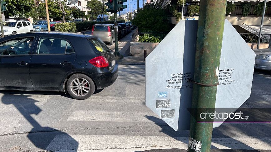 Το περιστατικό αυτό, κατέγραψε ο φωτογραφικός φακός του cretapost.gr, σε κεντρική διασταύρωση της πόλης και συγκεκριμένα στην συμβολή των οδών Παπανδρέου – Μίνωος. Όπως βλέπετε στις εικόνες, η πινακίδα του STOP είναι στραμμένη προς την διάβαση των πεζών και όχι από την πλευρά που βρίσκεται το φανάρι.