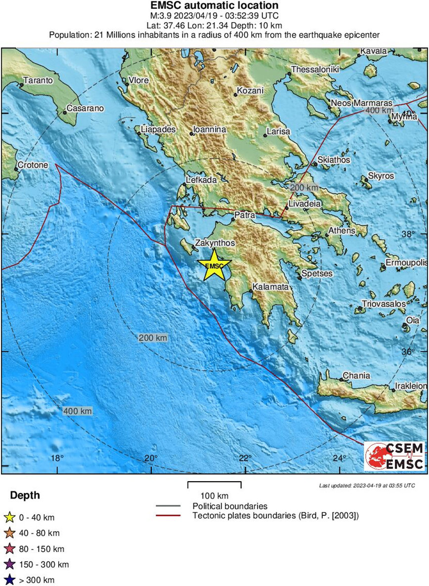 Το Ευρωμεσογειακό Ινστιτούτο υπολόγισε τον σεισμό στα 4 Ρίχτερ, 22 χλμ νότια-νοτιοδυτικά του Πύργου, με εστιακό βάθος στα 10 χλμ.
