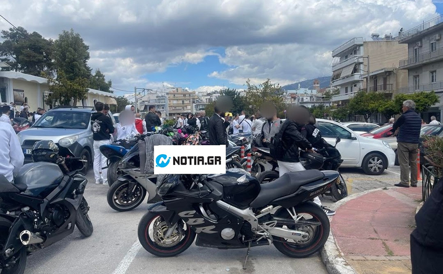 Τραγικές φιγούρες οι γονείς του Νίκου και η αδελφή του, χαμένοι στον πόνο τους. Φεύγοντας από το νεκροταφείο, όπως αναφέρει το notia.gr οι φίλοι του άρχισαν να μαρσάρουν με τις μηχανές δημιουργώντας μία εκκωφαντική ατμόσφαιρα.