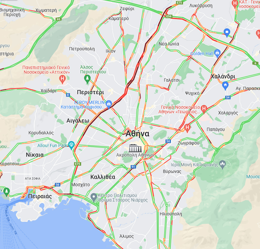 Δείτε τον χάρτη με την κίνηση στους δρόμους αυτή την ώρα (08:02)…