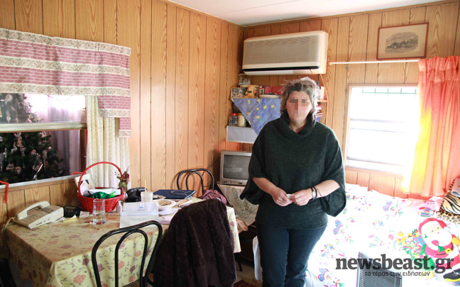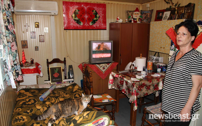 Η κυρία Πελαγία Χόρτη, ζει εκεί έντεκα χρόνια σχεδόν. Μας άνοιξε το σπιτικό της και μας έδειξε τις συνθήκες διαβίωσης
