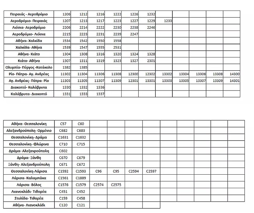 Δείτε τους πίνακες με τα δρομολόγια: