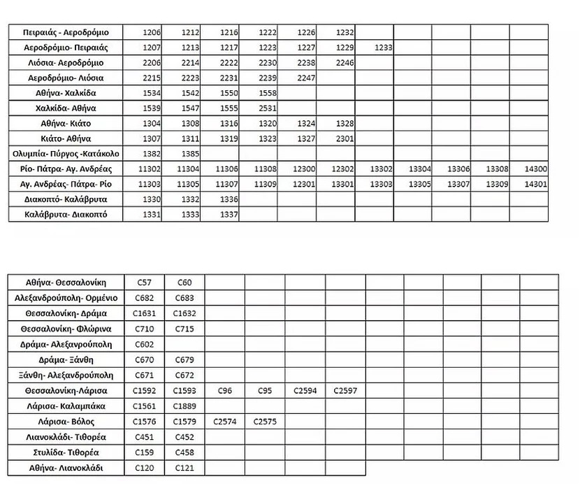 Αναλυτικά οι αμαξοστοιχίες που θα κυκλοφορήσουν κανονικά: