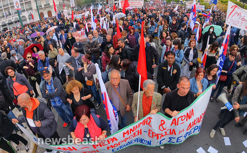 Όσον αφορά τη συγκέντρωση του ΠΑΜΕ, οι διαδηλωτές από τα διάφορα μέρη του κέντρου της Αθήνας, κατευθύνθηκαν στην πλατεία Συντάγματος, για το κύριο μέρος της απεργιακής κινητοποίησης φωνάζοντας συνθήματα υπέρ των εργατικών αγώνων και διεκδικήσεων. Η έναρξη της εκδήλωσης έγινε συμβολικά με την απαγγελία του ποιήματος «Σώπα, μη μιλάς» του Τούρκου ποιητή και λογοτέχνη Αζίζ Νεσίν, το οποίο απήγγειλε ο ηθοποιός Βασίλης Κολοβός.
