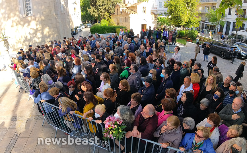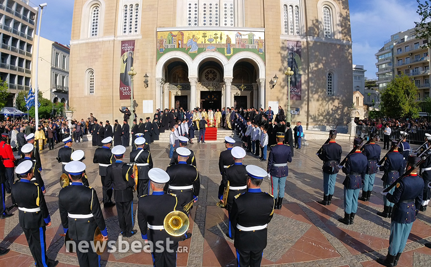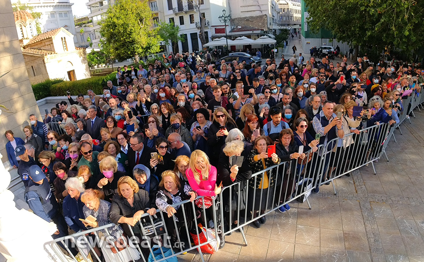 H εικόνα της Παναγίας του Άξιον Εστί από το Άγιο Όρος έφθασε στη Μητρόπολη Αθηνών. Οι πιστοί έχουν μαζευτεί πίσω από τα κάγκελα που έχουν τοποθετηθεί περιμετρικά του Ναού, προκειμένου να προσκυνήσουν την εικόνα.