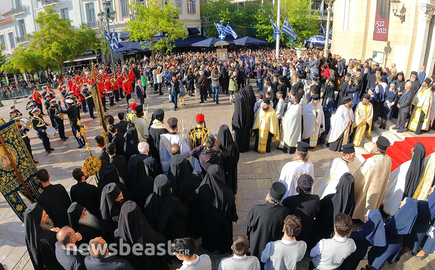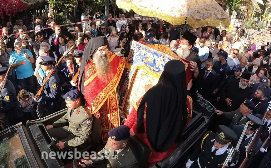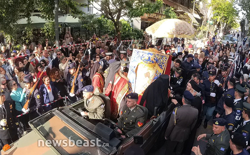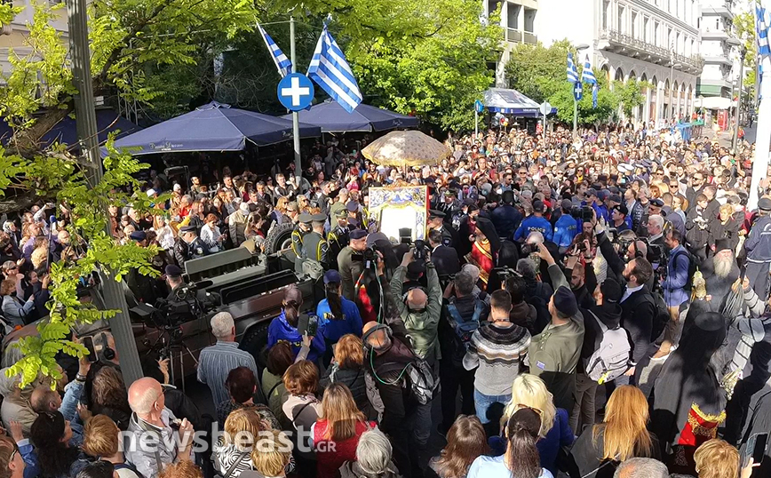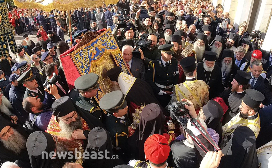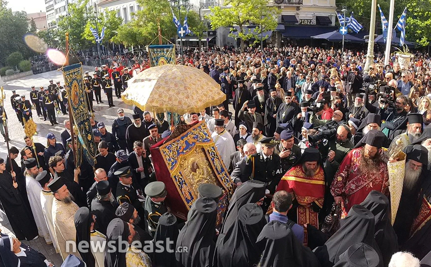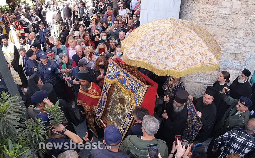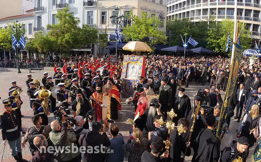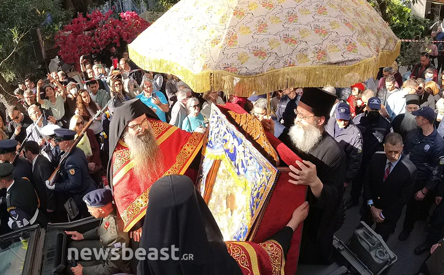 Με μια μεγαλοπρεπή πομπή, η εικόνα συνοδεύτηκε από την εκκλησία της Αγίας Δυνάμεως, που φυλασσόταν μέχρι πρότινος, έως τη Μητρόπολη Αθηνών, με τους πιστούς να παρακολουθούν με θαυμασμό.