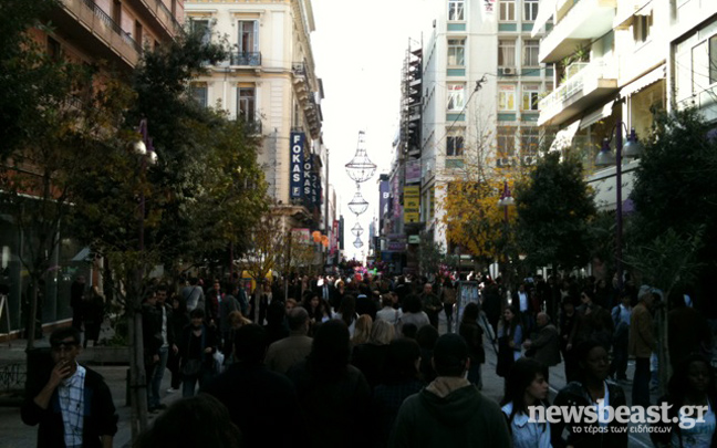 Μια βόλτα δεν κοστίζει, εκτός κι αν κάνει κάποιος αγορές από καταστήματα. Αρκετοί Αθηναίοι ξεχύθηκαν σήμερα στους κεντρικούς δρόμους της πρωτεύουσας για να κάνουν τη βόλτα τους.