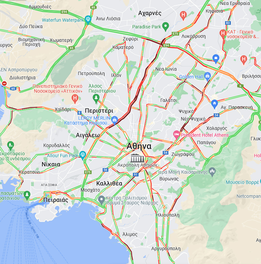 Δείτε τον χάρτη με την κίνηση τώρα στους δρόμους…