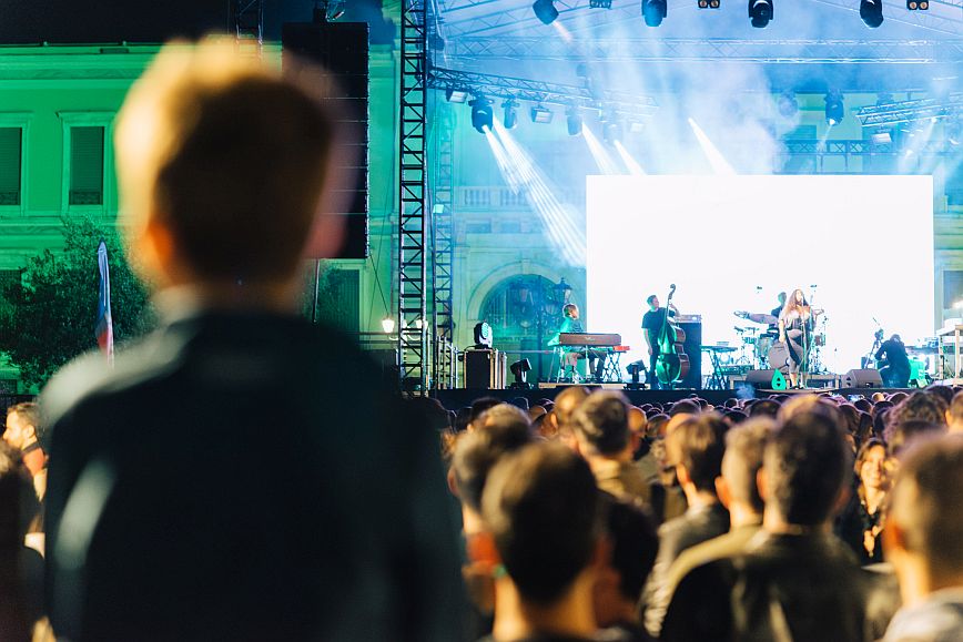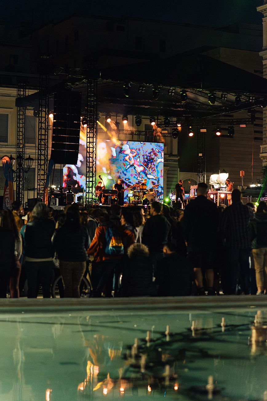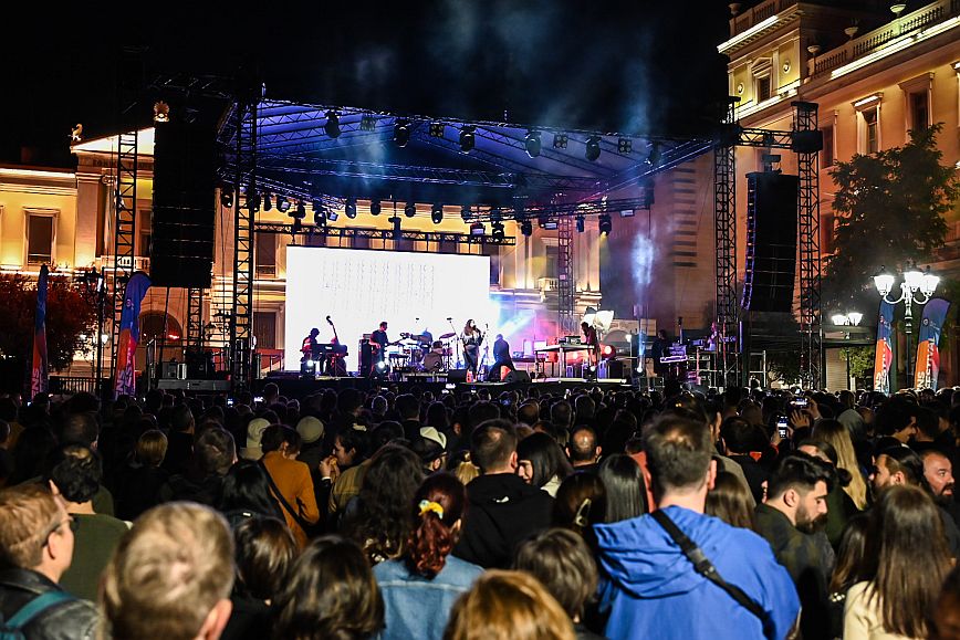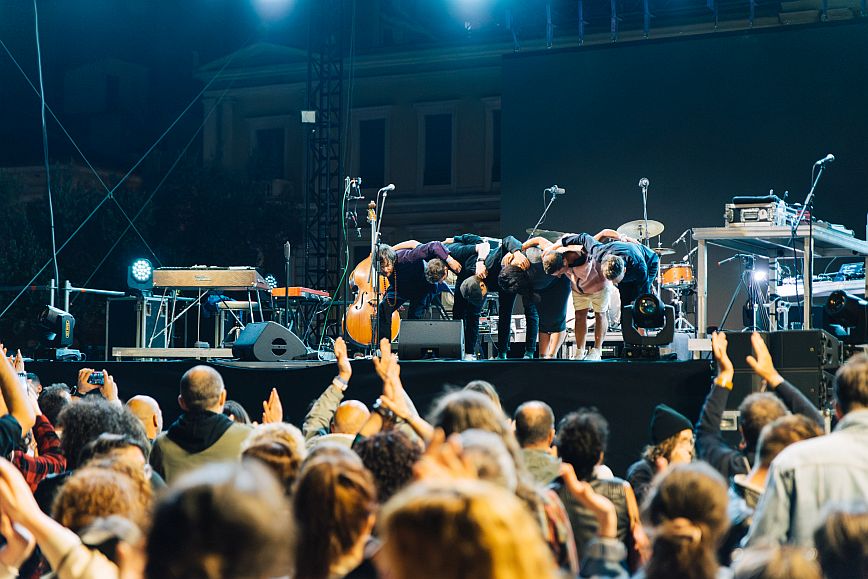 Το δημαρχείο, καθώς και όλα τα κτίρια της πλατείας, είχαν φωτιστεί ανάλογα, προκειμένου να υποδεχτούν το συγκρότημα που μαγεύει το κοινό του με τον χαρακτηριστικό nu jazz ήχο του και τα ξεχωριστά visuals. Οι Cinematic Orchestra βγήκαν στη σκηνή λίγο πριν από τις 21.30, προσφέροντας για περίπου δύο ώρες, μια οπτικοακουστική εμπειρία με έντονη κινηματογραφική ατμόσφαιρα, παίζοντας όλες τις μεγάλες τους επιτυχίες όπως Α caged bird, Lessons, και All that you give, γεμίζοντας συγκίνηση το κοινό.
