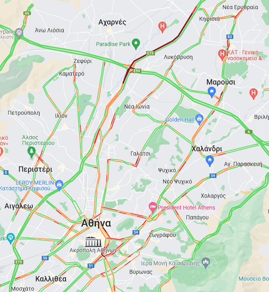 Δείτε τον χάρτη με την κίνηση τώρα στους δρόμους…
