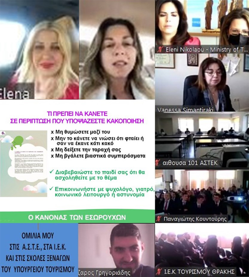 Η Έλενα Ράπτη, βουλευτής Α’ Θεσσαλονίκης, στο πλαίσιο των ενημερωτικών εκδηλώσεων, που διοργανώνει το Υπουργείο Τουρισμού με θέμα την πρόληψη και την αντιμετώπιση της παιδικής σεξουαλικής κακοποίησης, μίλησε στους σπουδαστές, το εκπαιδευτικό και διοικητικό προσωπικό και τους καταρτιζόμενους των Σχολών Ξεναγών του Υπουργείου Τουρισμού, των Ανώτερων Σχολών Τουριστικής Εκπαίδευσης και των ΙΕΚ του Υπουργείου Τουρισμού.