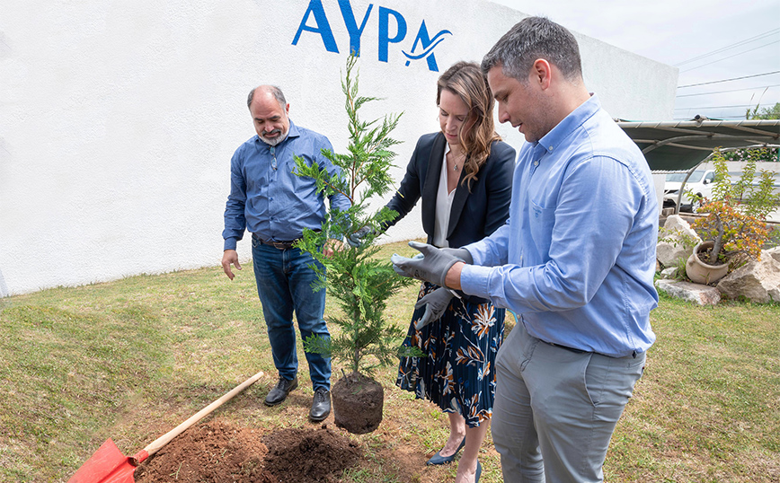 Στο πλαίσιο της εκδήλωσης για την ανακοίνωση του στόχου να γίνει το εργοστάσιο κλιματικά ουδέτερο, υλοποιήθηκε συμβολική δενδροφύτευση στον προαύλιο χώρο του εργοστασίου.