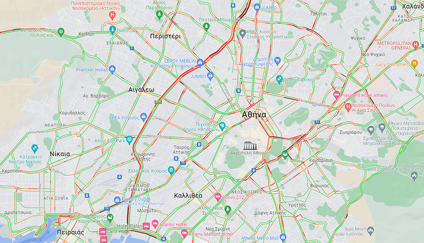 Δείτε τον χάρτη με την κίνηση τώρα στους δρόμους…