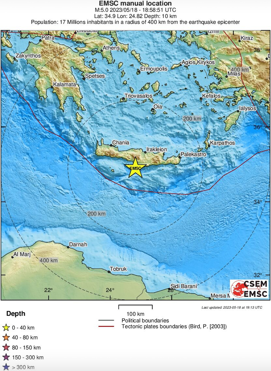 Ανακοίνωση Σεισμού 5.1, 7 χλμ. ΝΝΔ των Μοιρών Ηρακλείου.