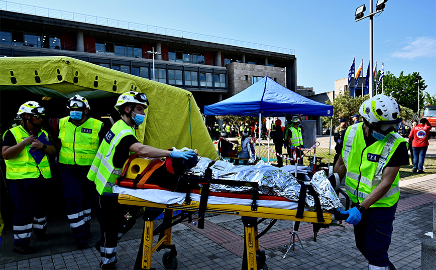 Στην άσκηση που οργανώθηκε από τον Δήμο Θεσσαλονίκης συμμετείχε και το ΕΚΑΒ. «Δεχτήκαμε κλήση στο συντονιστικό κέντρο για συμβάν στο Δημαρχιακό Μέγαρο Θεσσαλονίκης και είχαμε άμεση κινητοποίηση με τη διασωστική μοτοσυκλέτα, με ασθενοφόρα, κινητές ιατρικές μονάδες και τα οχήματα του ειδικού τμήματος Ιατρικής Καταστροφών καθώς και με το κινητό συντονιστικό όχημα», εξήγησε η Ολυμπία Νικολαΐδου, επειγοντολόγος του ΕΚΑΒ Θεσσαλονίκης. Μετά την εκκένωση του Δημαρχείου οι υπάλληλοι οδηγήθηκαν στους χώρους συγκέντρωσης κοινού στο πάρκο Εμμανουήλ Παπά και στο Πεδίον του Άρεως.
