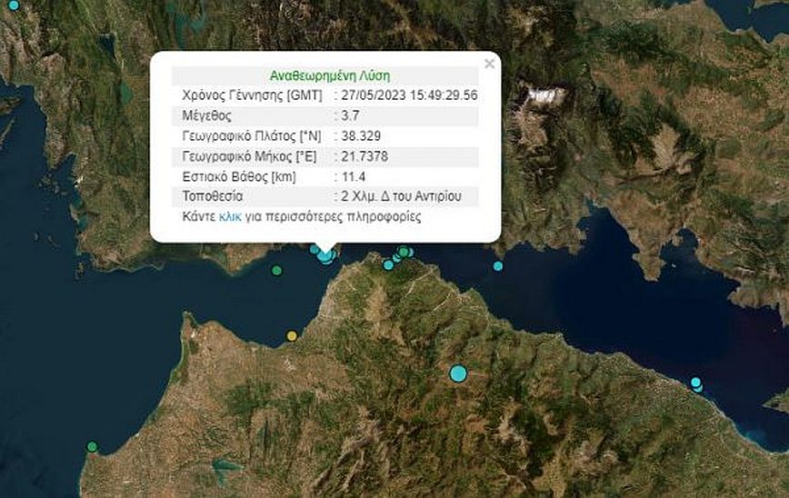 Σύμφωνα με την αναθεωρημένη λύση του Γεωδυναμικού Ινστιτούτου του Εθνικού Αστεροσκοπείου Αθηνών, ο σεισμός είχε μέγεθος 3,7 βαθμών της κλίμακας Ρίχτερ και το επίκεντρο εντοπίστηκε δύο χιλιόμετρα δυτικά του Αντιρρίου, ενώ το εστιακό βάθος προσδιορίστηκε περίπου στα 11 χιλιόμετρα.