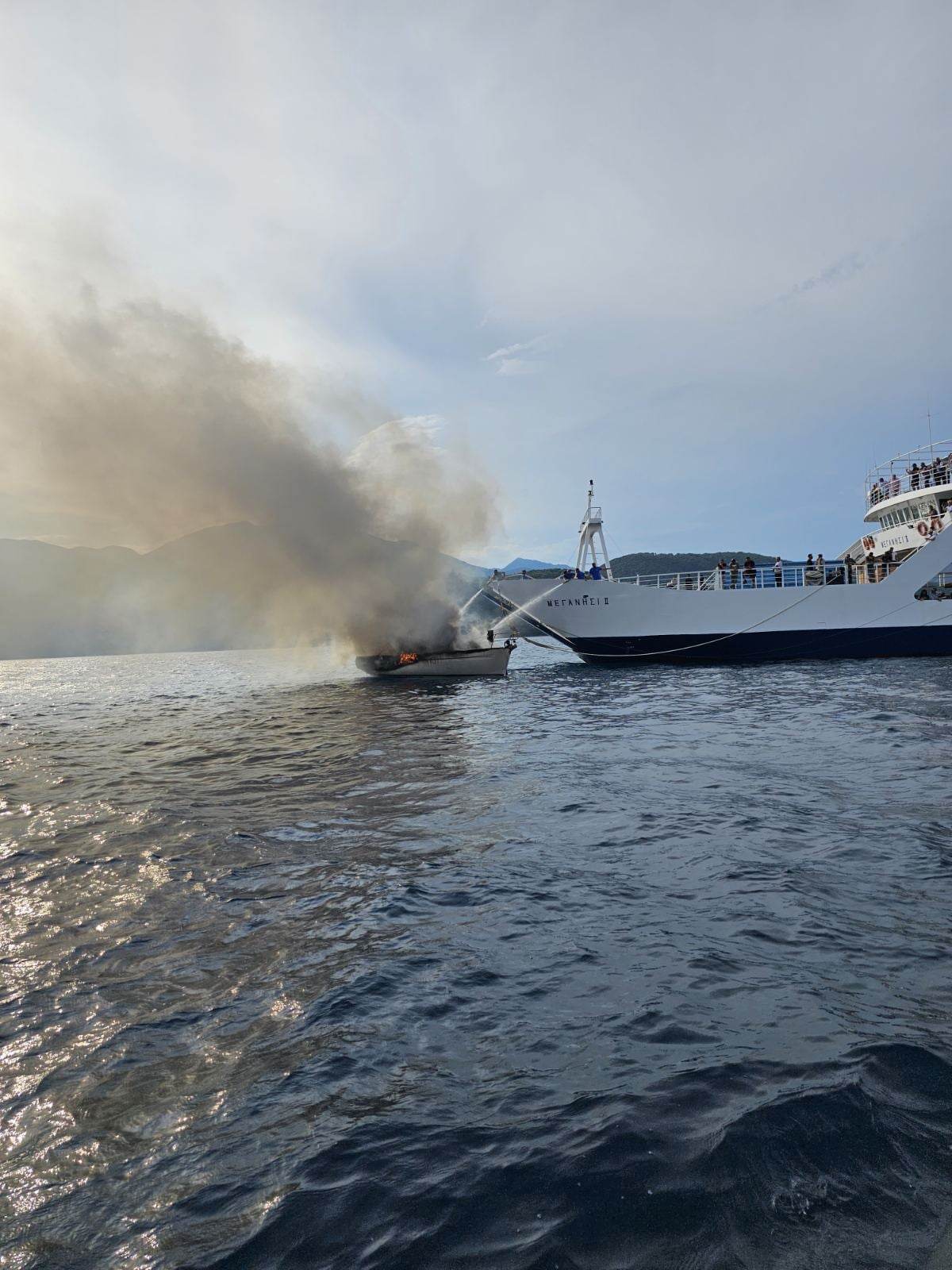 Όπως μετέδωσε η τοπική ιστοσελίδα ilefkada, για την κατάσβεση έσπευσαν σκάφος και άνδρες του Λιμενικού Νυδριού, καθώς και ιδιωτικά σκάφη. Προσπάθεια κατάσβεσης έκανε και το πλοίο της γραμμής «Μεγανήσι 2».