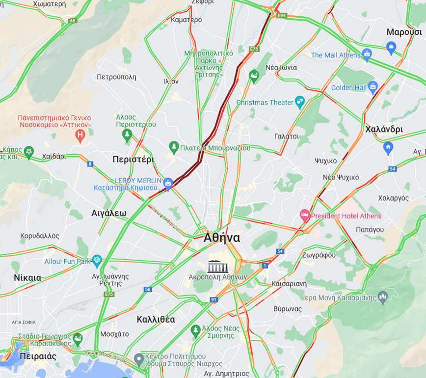 Δείτε τον χάρτη με την κίνηση τώρα στους δρόμους…