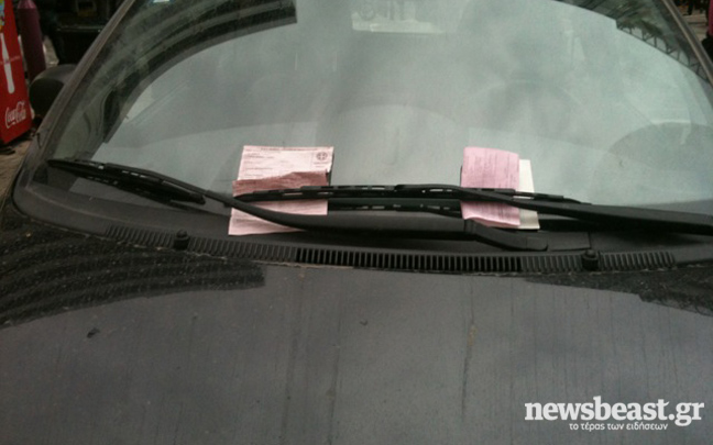 Το αυτοκίνητο που φαίνεται στις φωτογραφίες είναι παρατημένο στον πεζόδρομο στη συμβολή των οδών Ερμού και Νίκης από την Παρασκευή. Χαρακτηριστικό είναι ότι στο παρμπρίζ υπάρχουν δύο κλήσεις της δημοτικής αστυνομίας, που εκδόθηκαν σε διαφορετικές ημέρες μάλιστα. Η μία την Παρασκευή, η άλλη σήμερα, Δευτέρα.