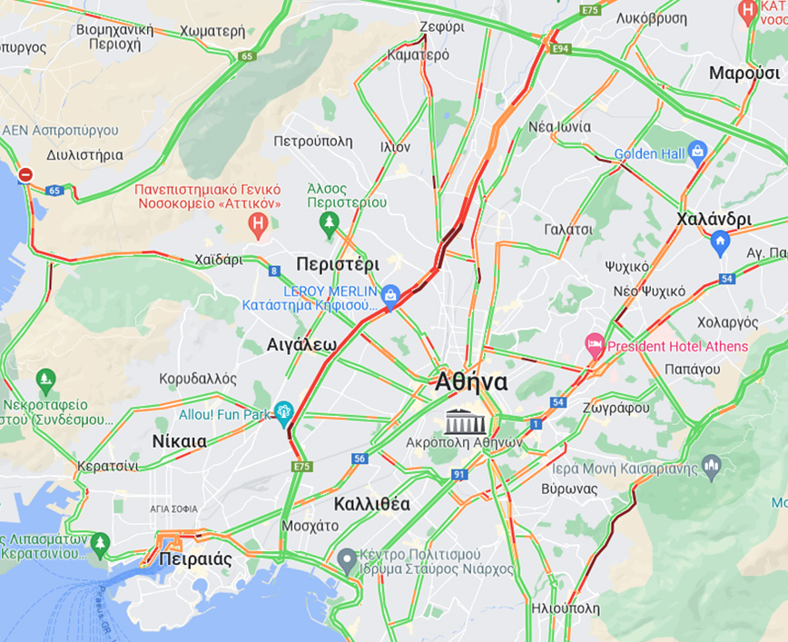 Ειδικότερα, σύμφωνα με την Τροχαία, η κίνηση είναι αυξημένη στα εξής σημεία: