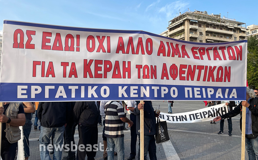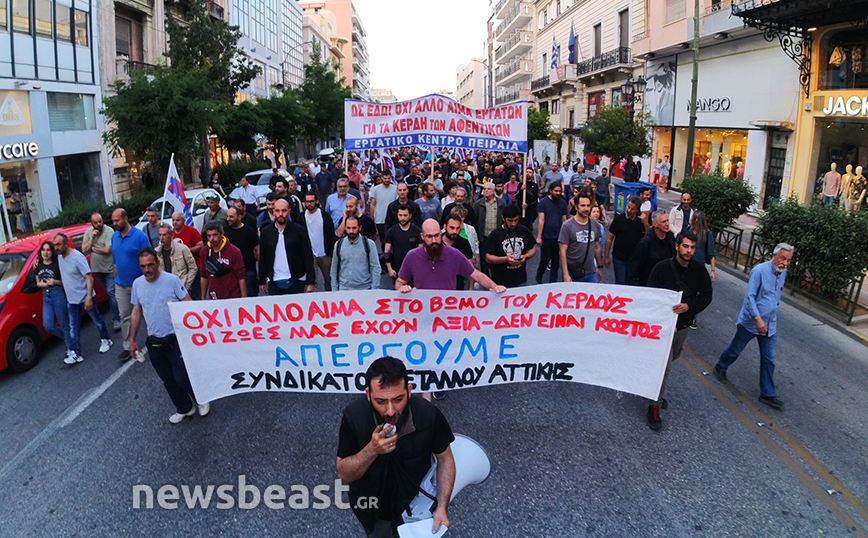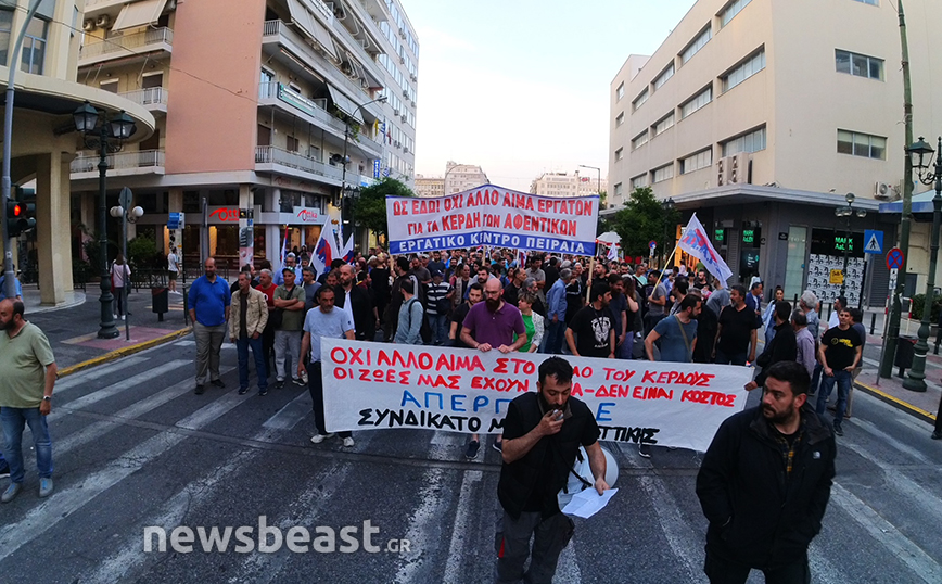 Με συνθήματα «όχι άλλο αίμα εργατών για τα κέρδη των αφεντικών» και «τα κέρδη τους ή οι ζωές μας» που αναγράφονται στα πανό, οι διαδηλωτές πραγματοποίησαν πορεία στους γύρω δρόμους.