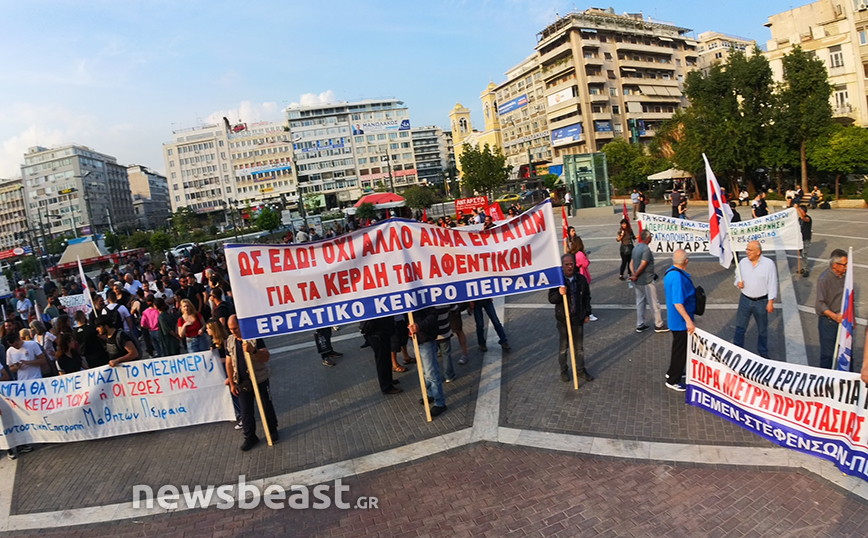 Στην πλατεία Κοραή στο κέντρο του Πειραιά πραγματοποιείται συγκέντρωση διαμαρτυρίας από διάφορους φορείς και συλλογικότητες, με αφορμή το εργατικό δυστύχημα στο Πέραμα που κόστισε τη ζωή ενός 47χρονου εργαζόμενου.