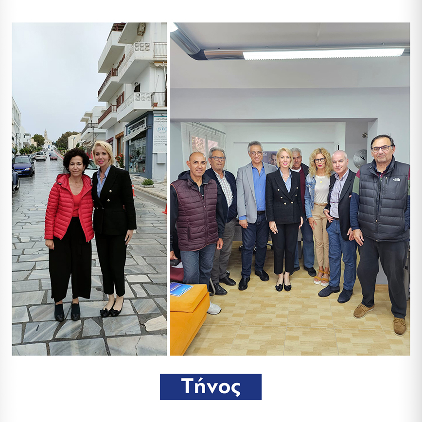 Έπειτα, η Κατερίνα Μονογυιού επισκέφτηκε την Τήνο, όπου πραγματοποίησε συναντήσεις εργασίας με την Έπαρχο Τήνου κ. Αναστασία Δεληγιάννη και στη συνέχεια με μέλη της ΔΗΜ.Τ.Ο Τήνου. Η Κατερίνα Μονογυιού επισκέφτηκε την Παναγία της Τήνου και το Μοναστήρι της Αγίας Πελαγίας για προσκύνημα. Η υποψήφια βουλευτής περιόδευσε σε δύο χωριά του νησιού, επισκέφτηκε τοπικά καταστήματα και συνομίλησε με επιχειρηματίες και εργαζόμενους.