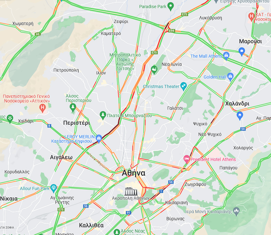 Δείτε τον χάρτη με την κίνηση τώρα στους δρόμους…