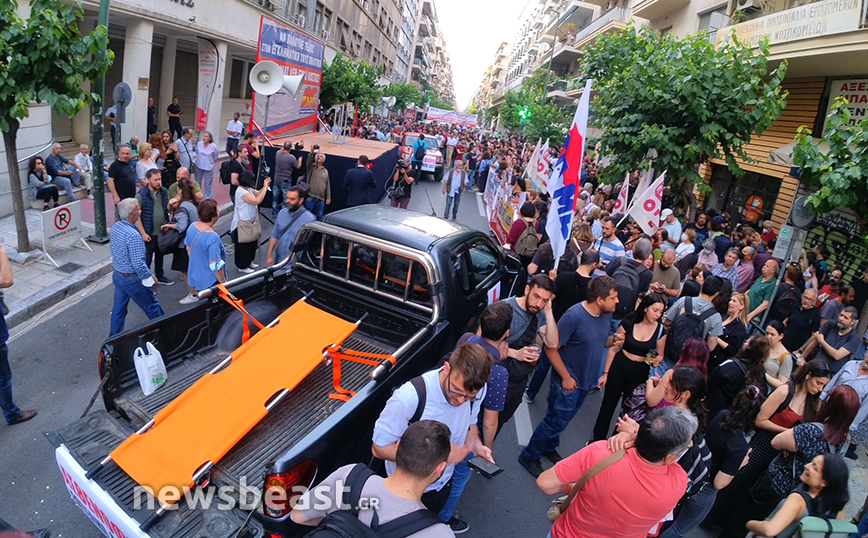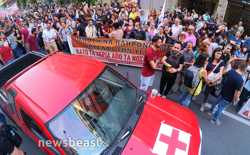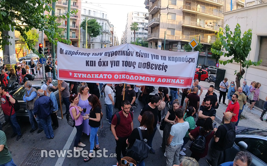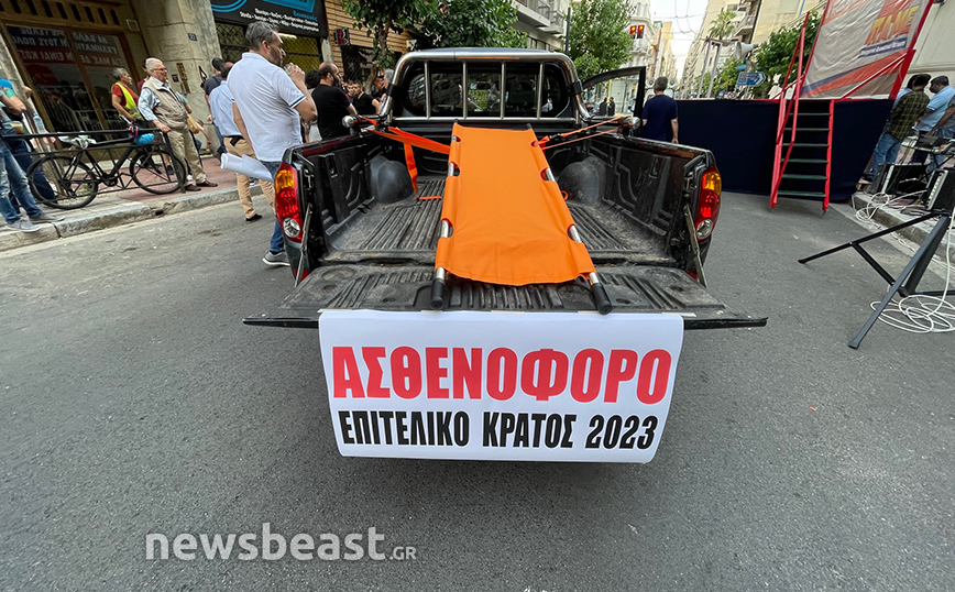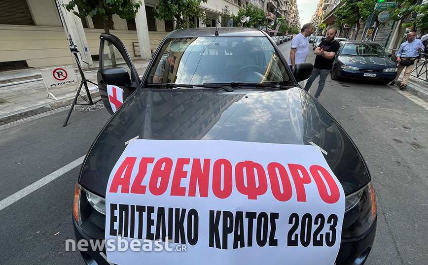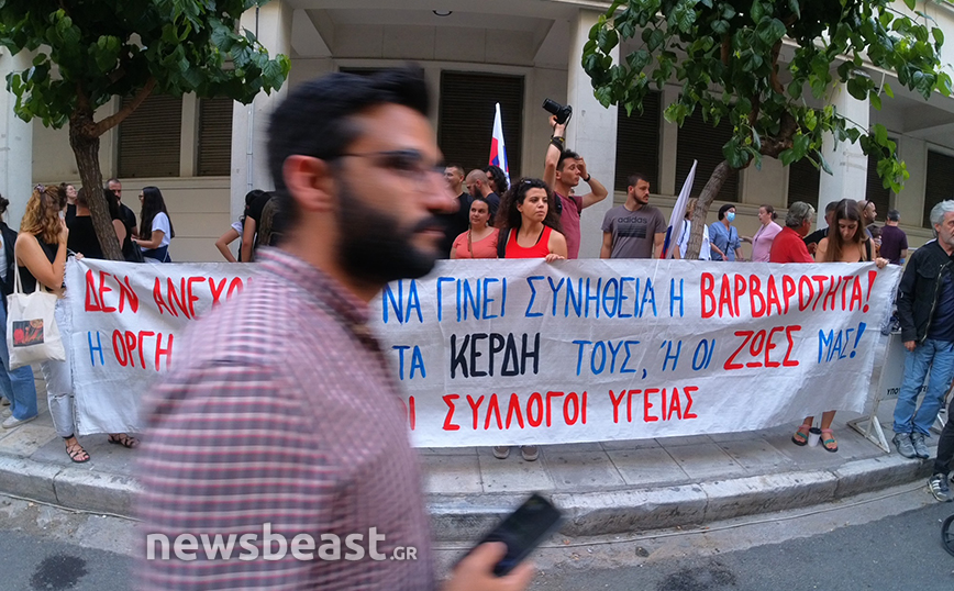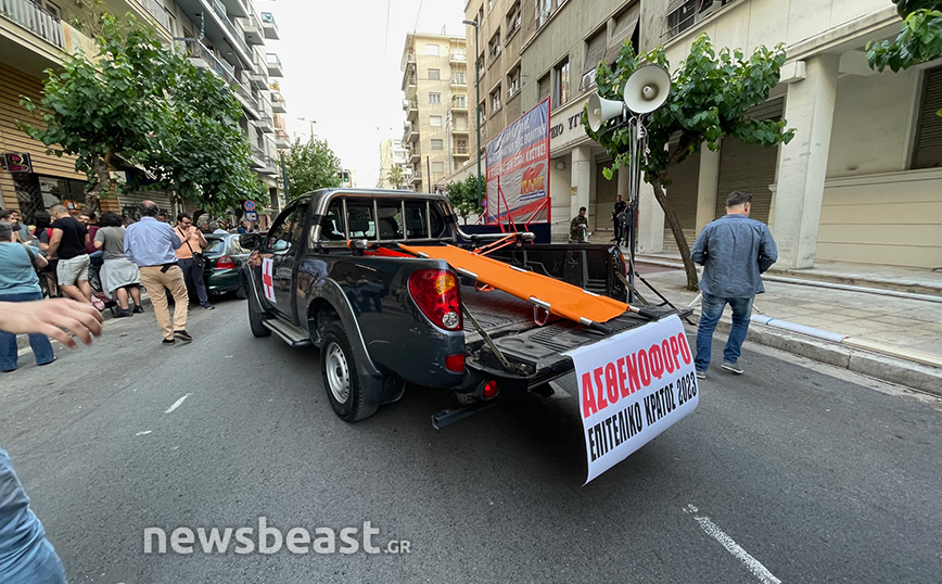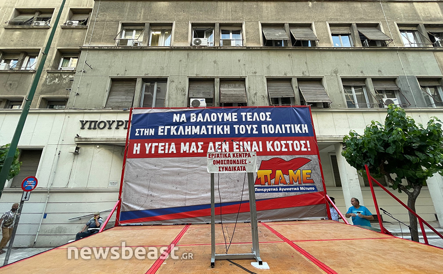 Έξω από το υπουργείο Υγείας πραγματοποιείται συγκέντρωση διαμαρτυρίας με αφορμή τα πρόσφατα περιστατικά με θανάτους πολιτών που φέρονται να αποδίδονται στο γεγονός ότι καθυστέρησαν τα ασθενοφόρα του ΕΚΑΒ.