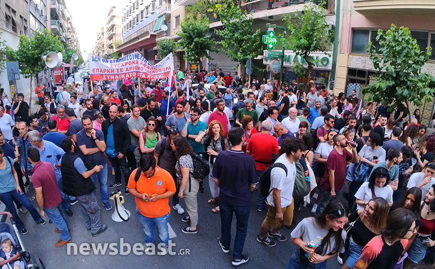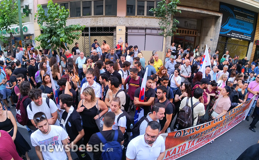 Ο δρόμος έχει κλείσει, ενώ στην Αριστοτέλους έχει εγκατασταθεί μικροφωνική εγκατάσταση.