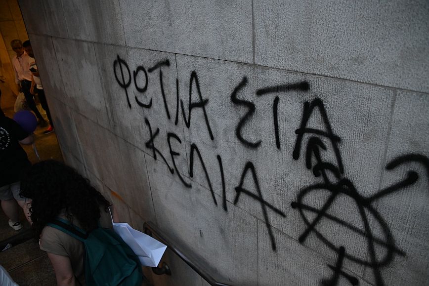 Επεισόδια σημειώθηκε λίγο μετά τις 20.00 στο κέντρο της Αθήνας, όταν κατά τη διάρκεια πορείας για απεργό πείνας, ομάδα αντιεξουσιαστών έσπασε ακυρωτικά μηχανήματα στο μετρό του Συντάγματος και έγραψε συνθήματα στους τοίχους.