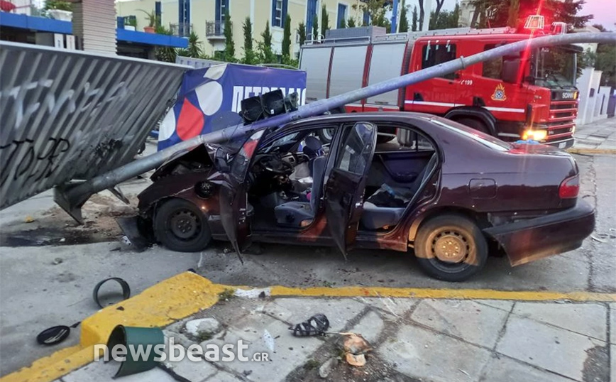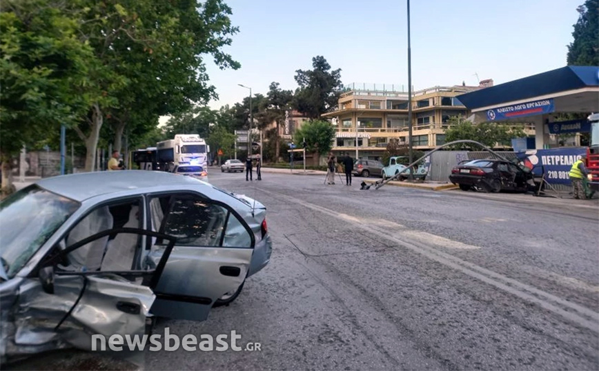 Είναι χαρακτηριστικό ότι τα δύο οχήματα «καρφώθηκαν» το ένα σε πινακίδες οδοσήμανσης και το δεύτερο σε ένα φανάρι πού βρίσκεται στο καθοδικό ρεύμα της Λεωφόρου Κηφισίας. Μάλιστα, ήταν τόσο σφοδρή η σύγκρουση που το δεύτερο όχημα σταμάτησε την πορεία του πάνω σε λαμαρίνες ενός βενζινάδικου όπου πραγματοποιούνται εργασίες.