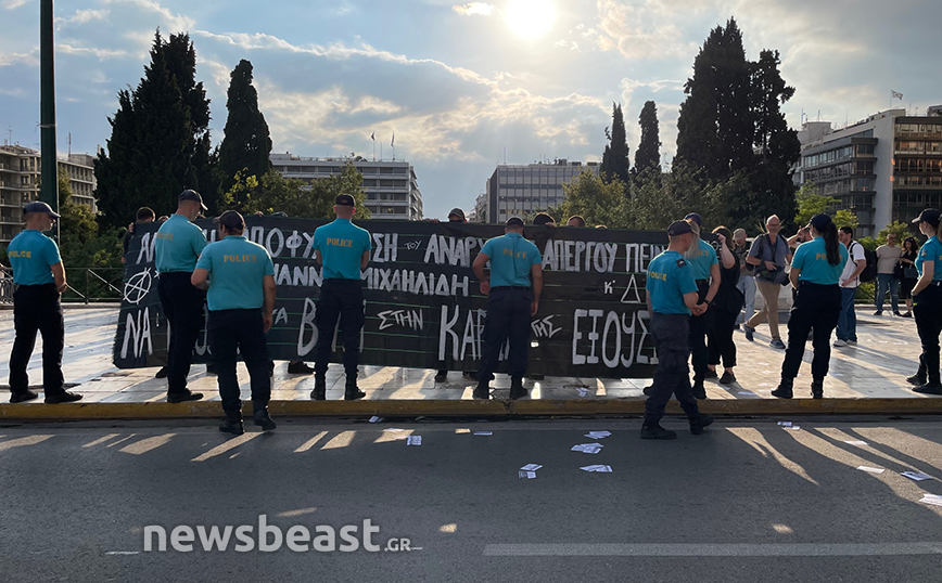 Στο Σύνταγμα πραγματοποιείται συγκέντρωση διαμαρτυρίας από άτομα του αντιεξουσιαστικού χώρου, όπου υποστηρίζουν το αίτημα του κρατούμενου Γιάννη Μιχαηλίδη, ώστε να του χορηγηθεί εκπαιδευτική άδεια.