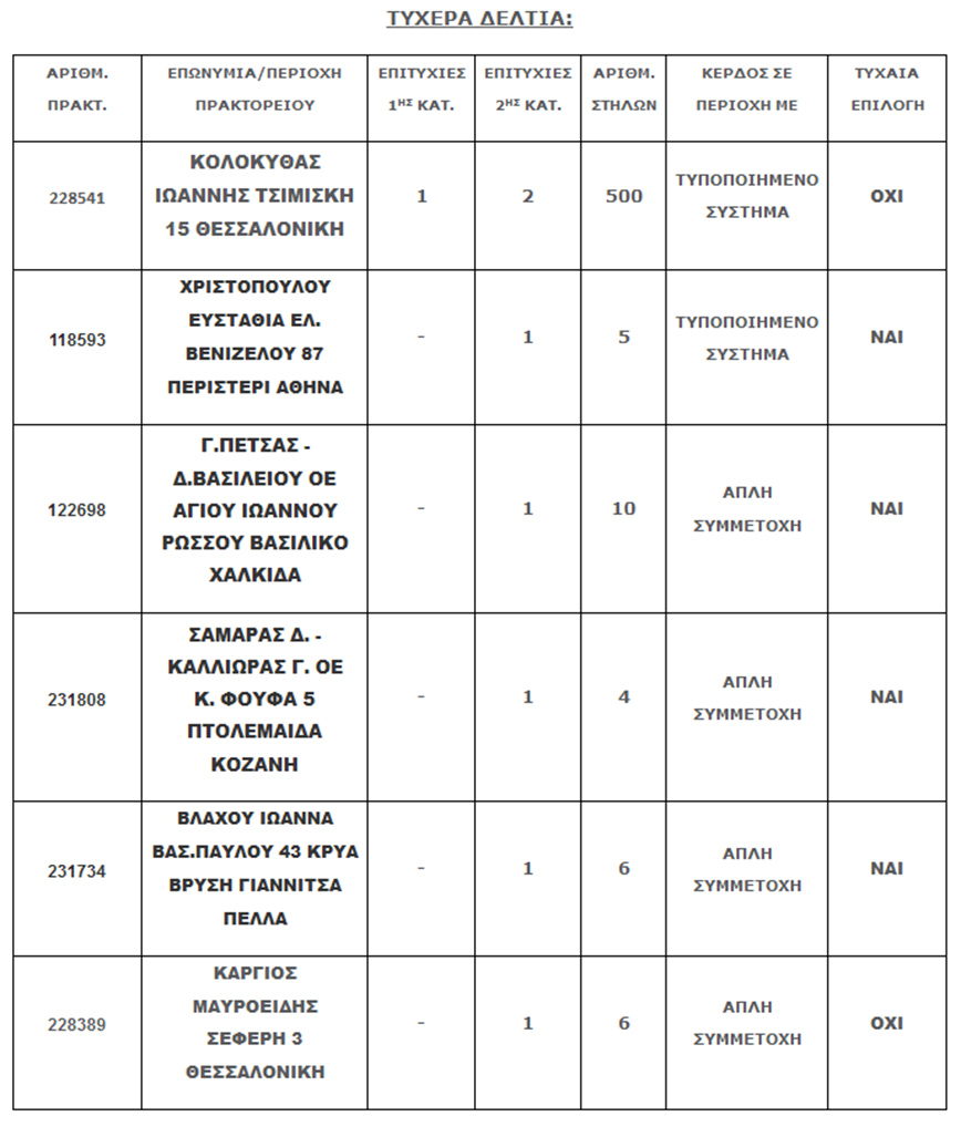 Τα τυχερά 5άρια βρέθηκαν σε Περιστέρι, Χαλκίδα, Κοζάνη, Γιαννιτσά, Θεσσαλονίκη