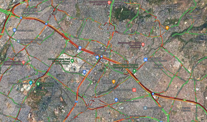 Επίσης, με καθυστερήσεις 10΄-15΄ διεξάγεται η κυκλοφορία στο ρεύμα προς Αεροδρόμιο από κόμβο Μεταμόρφωσης έως κόμβο Κηφισίας.