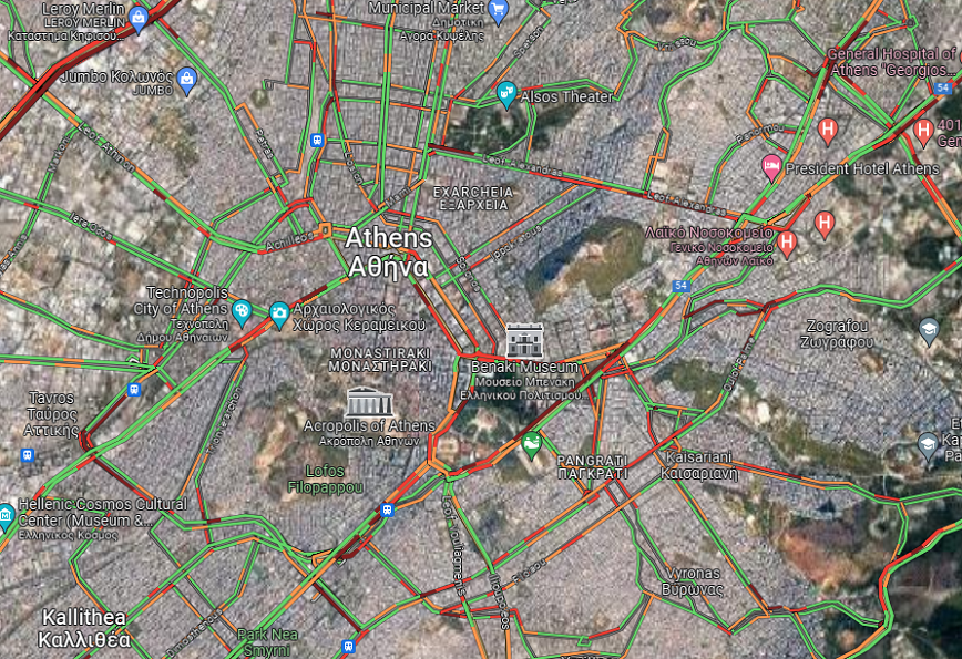 Μάλιστα, στο κέντρο της Αθήνας, αλλά και στους γύρω δρόμους επικρατεί το αδιαχώρητο.