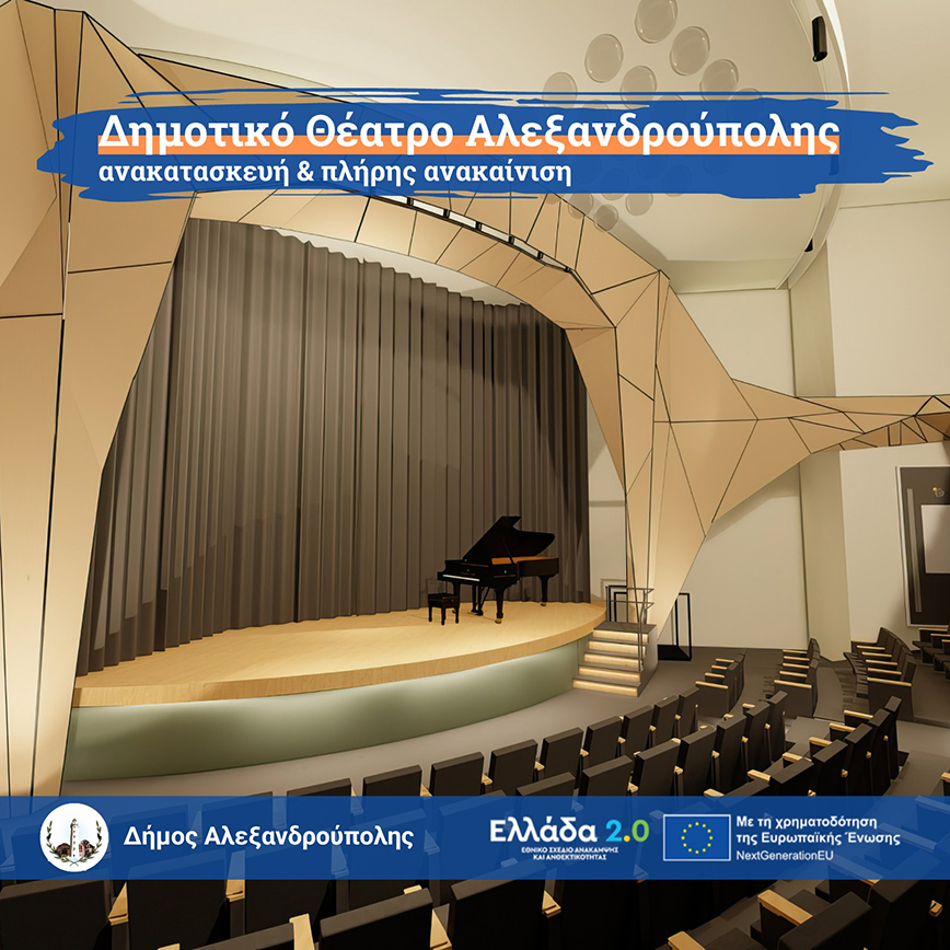 2. στην αναβάθμιση του Δημοτικού Θεάτρου Αλεξανδρούπολης με χρήση σύγχρονων υλικών και αισθητικών προσεγγίσεων στις υποδομές της σκηνής για υποστήριξη δράσεων θεατρικών και κινηματογραφικών παραστάσεων και συνεδριάσεων.