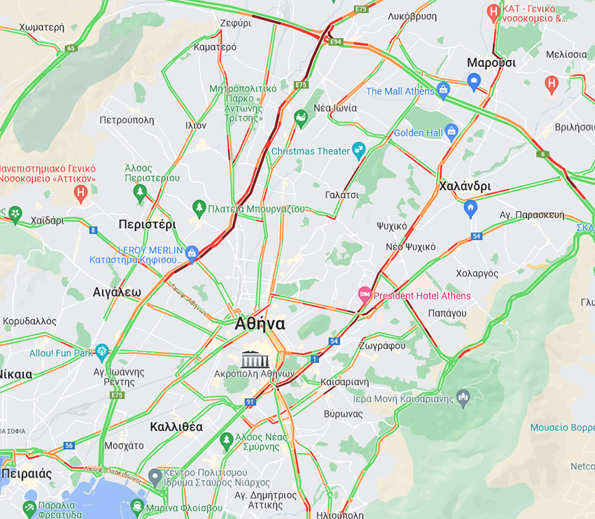 Ο χάρτης με την κίνηση τώρα στους δρόμους…