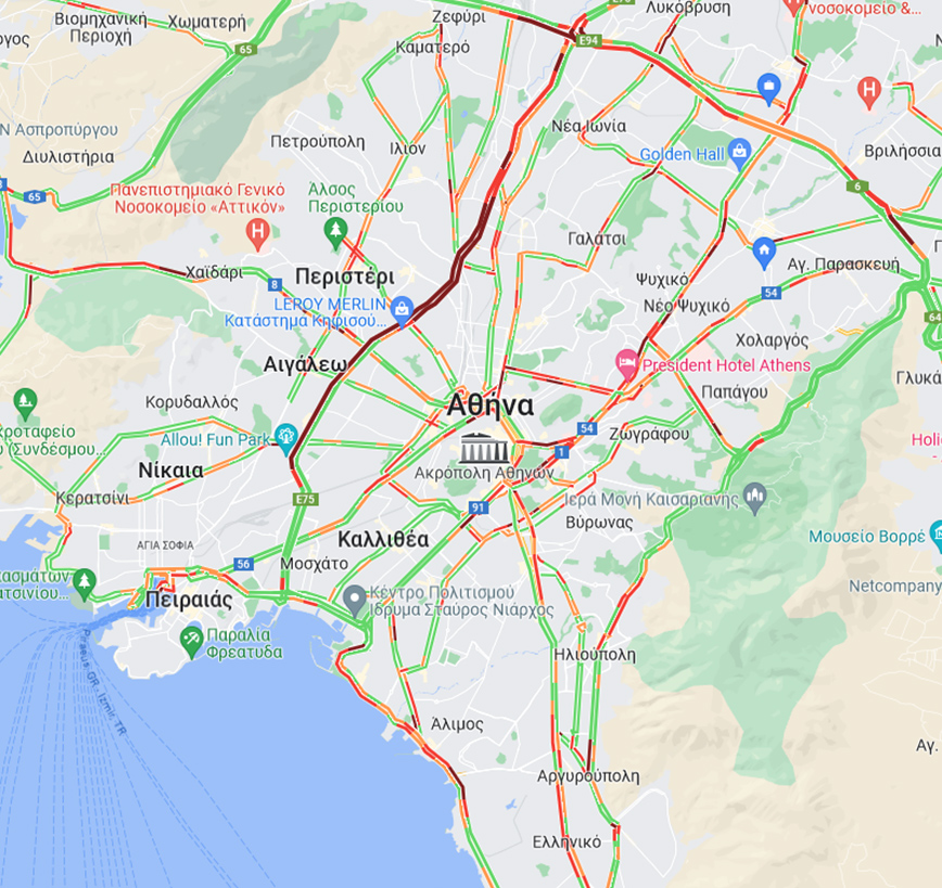 Η ουρά των οχημάτων φτάνει στις Τρεις Γέφυρες.