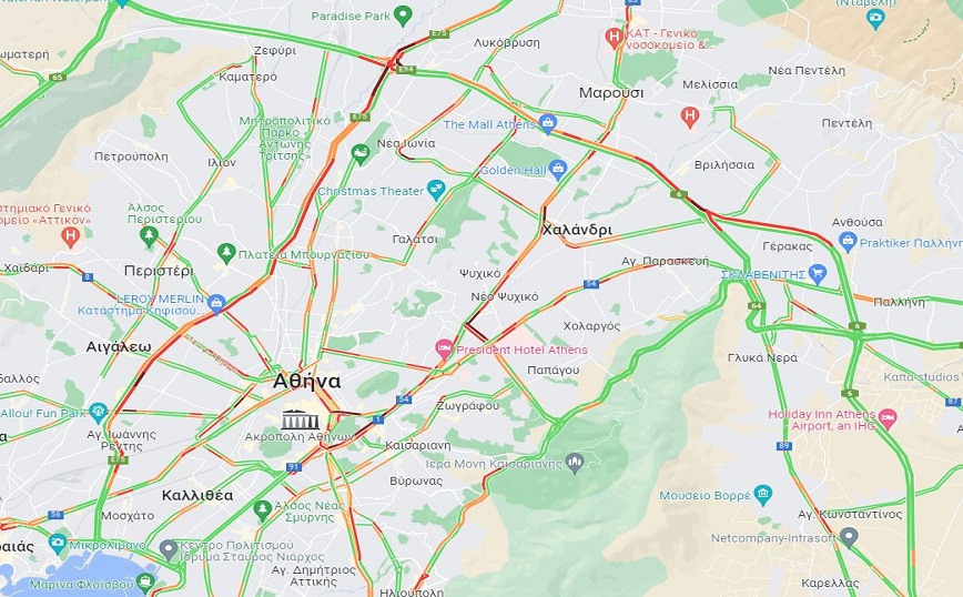 Σημειωτόν η κίνηση και στην άνοδο της Κηφισίας με τα σημαντικότερα προβλήματα να εντοπίζονται από το Νέο Ψυχικό μέχρι και το ύψος της οδού Καρέλλα.