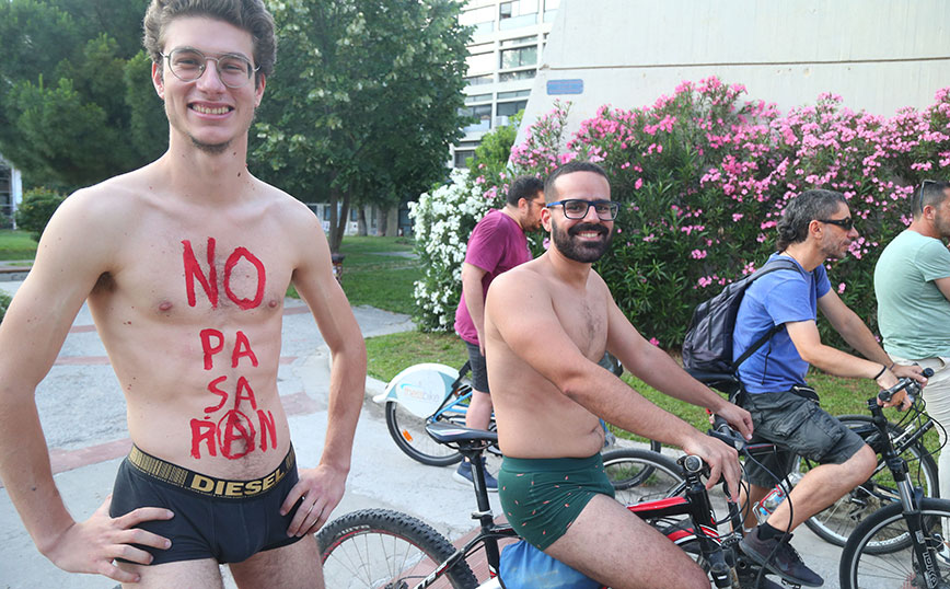 Με ζωγραφισμένα τα γυμνά ή ημίγυμνα σώματά τους και φωνάζοντας συνθήματα για τη διάδοση και προστασία του ποδηλάτου ως μέσου μετακίνησης, οι ποδηλάτες συγκεντρώθηκαν αρχικά στα γρασίδια της Φιλοσοφικής του ΑΠΘ. Από κει ξεκίνησαν την πορεία τους σε κεντρικούς δρόμους της πόλης, στέλνοντας το δικό τους μήνυμα σε μια γιορτή, όπως την αποκαλούν, διεκδίκησης για το ποδήλατο, το περιβάλλον και το ελεύθερο σώμα.