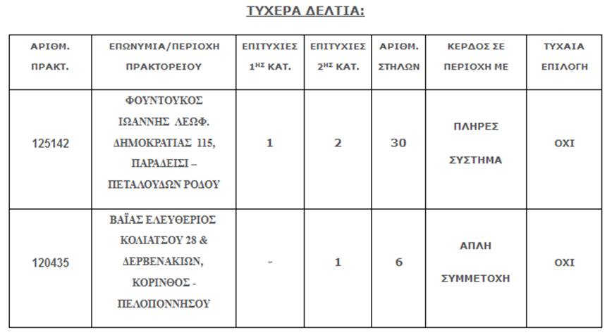 Το δελτίο συμπληρώθηκε σε πρακτορείο της περιοχής Παραδείσι – Πεταλούδων.