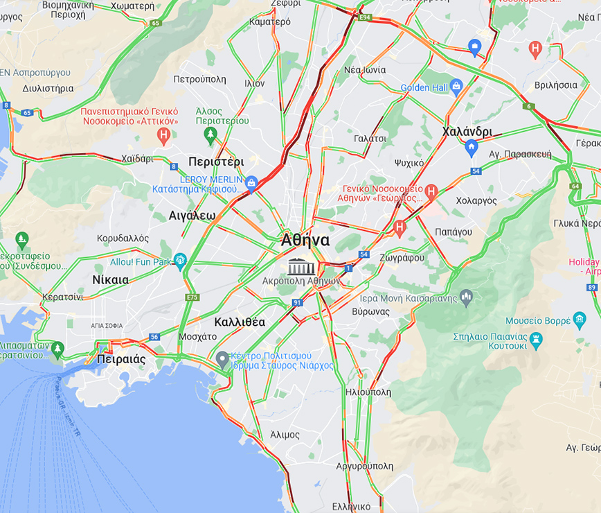 Ο χάρτης με την κίνηση τώρα στους δρόμους…