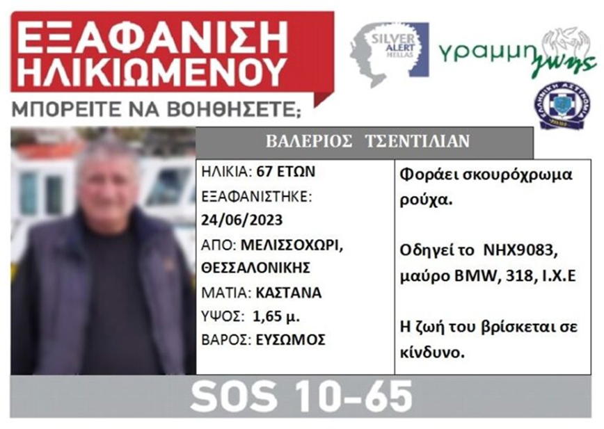 Σε έναν 67χρονο από το Μελισσοχώρι Θεσσαλονίκης, του οποίου η εξαφάνιση είχε δηλωθεί από τις 24 Ιουνίου, ανήκει η σορός που εντοπίστηκε σε παραλία. Το άψυχο σώμα εντοπίστηκε το πρωί της Τρίτης στην ανατολική Θεσσαλονίκη, στο ύψος του Διαβαλκανιακού Κέντρου, ειδοποιώντας άμεσα τις Αρχές.