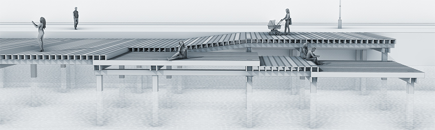 Για το έργο της κατασκευής ντεκ στην παλιά παραλία ο Δήμος Θεσσαλονίκης είχε προκηρύξει αρχιτεκτονικό διαγωνισμό ιδεών, που ολοκληρώθηκε πριν από περίπου έναν χρόνο. Το πρώτο βραβείο είχε απονεμηθεί στην πρόταση που υπογράφεται από τον αρχιτέκτονα μηχανικό Γεώργιο Δημόπουλο και την πολιτικό μηχανικό Βασιλική Παναγιωτοπούλου.
