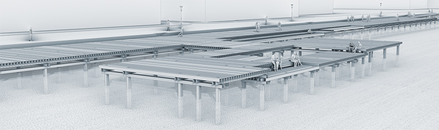 Το κατάστρωμα της επέκτασης τοποθετείται σε ένα επίπεδο χαμηλότερο από αυτό του υπάρχοντος κρηπιδώματος. Σε σημεία όπου το κατάστρωμα διασταυρώνεται με σημαντικούς άξονες, όπως αυτός της πλατείας Αριστοτέλους και της οδού Αγίας Σοφίας, διαμορφώνονται εγκολπώσεις.