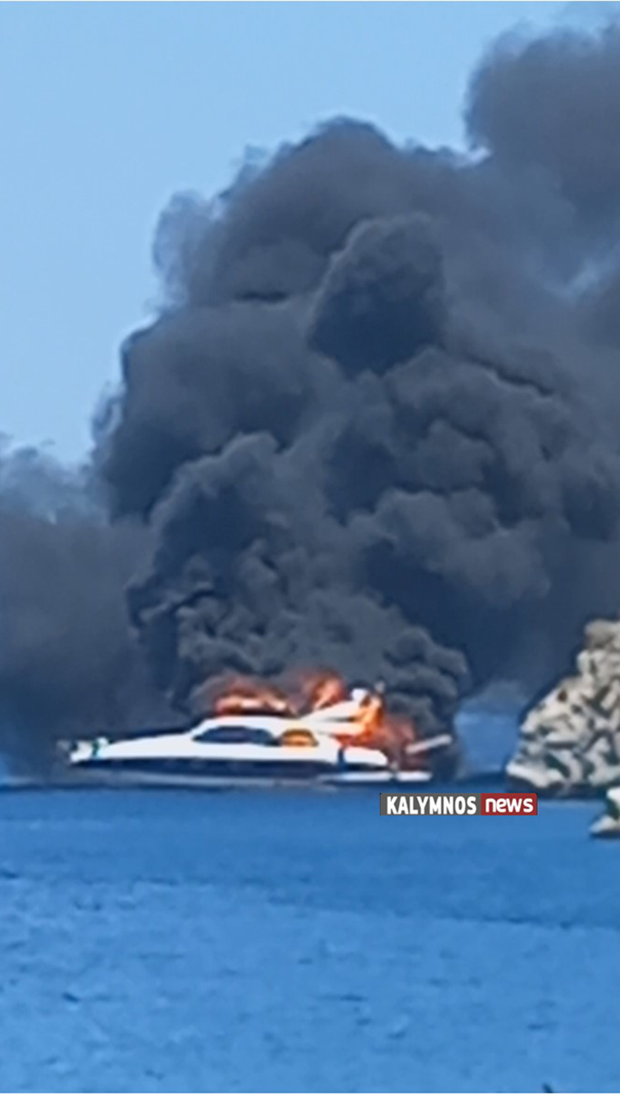 Στο σημείο βρίσκεται πλωτό του Λιμενικού ενώ έχει σπεύσει ρυμουλκό για κατάσβεση, όπως αναφέρει το kalymnos-news.gr.