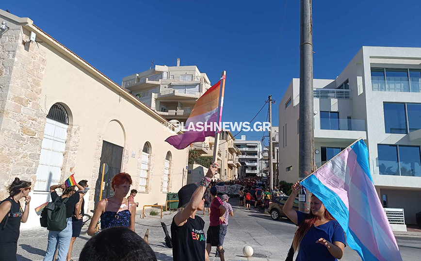Η πορεία ξεκίνησε από το θέατρο Βλησίδης στο Κουμ Καπί και θα καταλήξει στην παραλία του παλιού Ξενία όπου θα γίνει «Sunset Queer Beach Party».