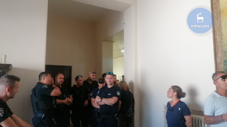 Μάλιστα, στο κτίριο υπήρχε ισχυρή αστυνομική παρουσία.