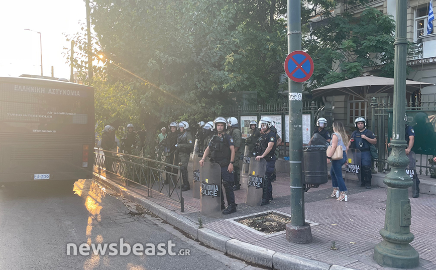 Επίσης, η Βασιλίσσης Σοφίας έκλεισε, ενώ στη συγκέντρωση διαμαρτυρίας βρέθηκαν και μέλη της εξωκοινοβουλευτικής αριστέρας.